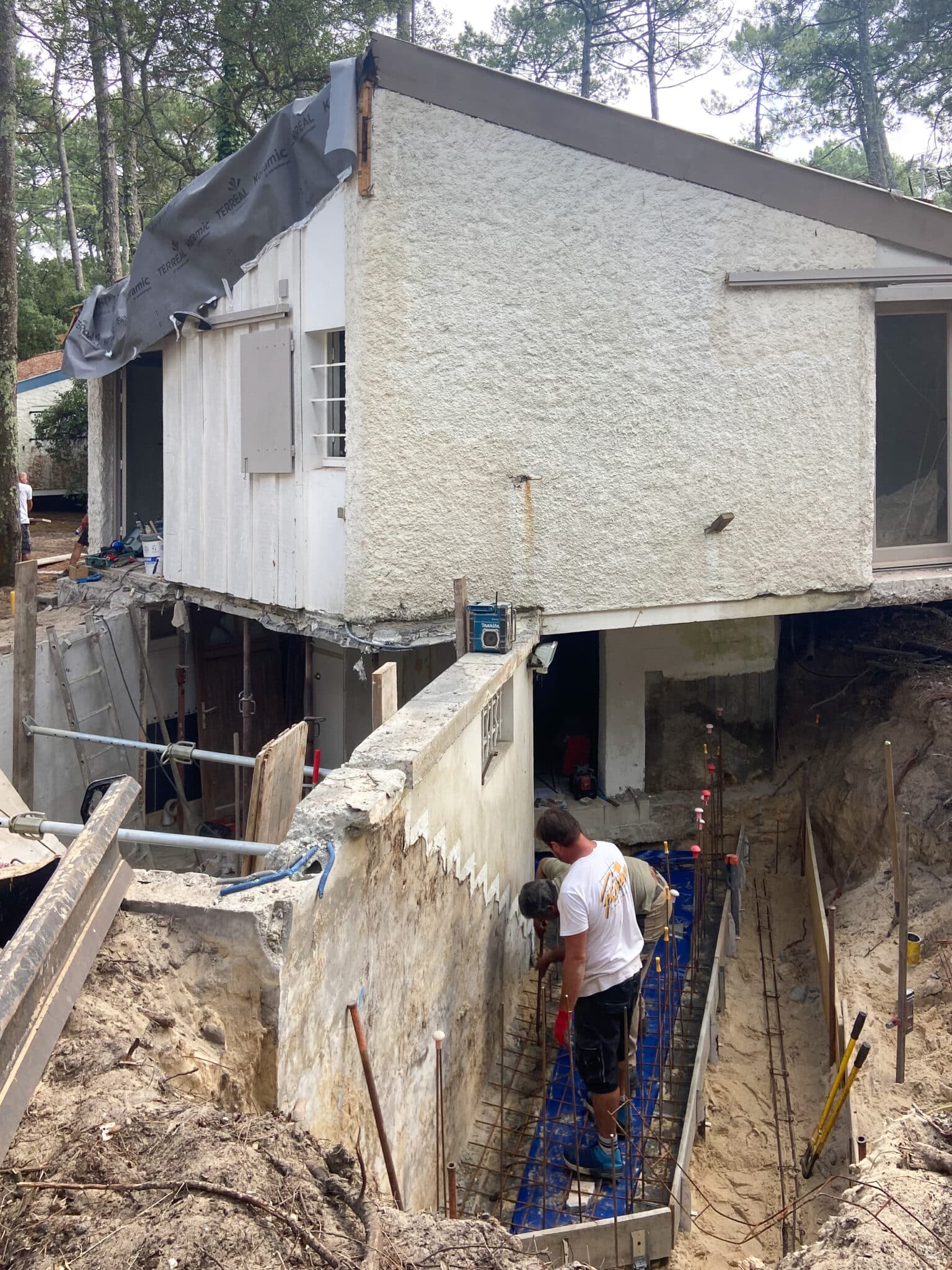 Extension et réhabilitation d’un chalet de vacances à la plage du Penon à Seignosse – démolitions et gros œuvre en cours